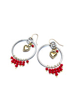 Where's the party at? The procession, the street dancing, the midnight ritual? Raquel will be there, every single time. And you'll know because everything she touches turns to Love. Gunmetal hoops are home to golden, flaming sacred hearts and are embellished beneath by tiny faceted Czech glass beads in a stunning matte red finish.